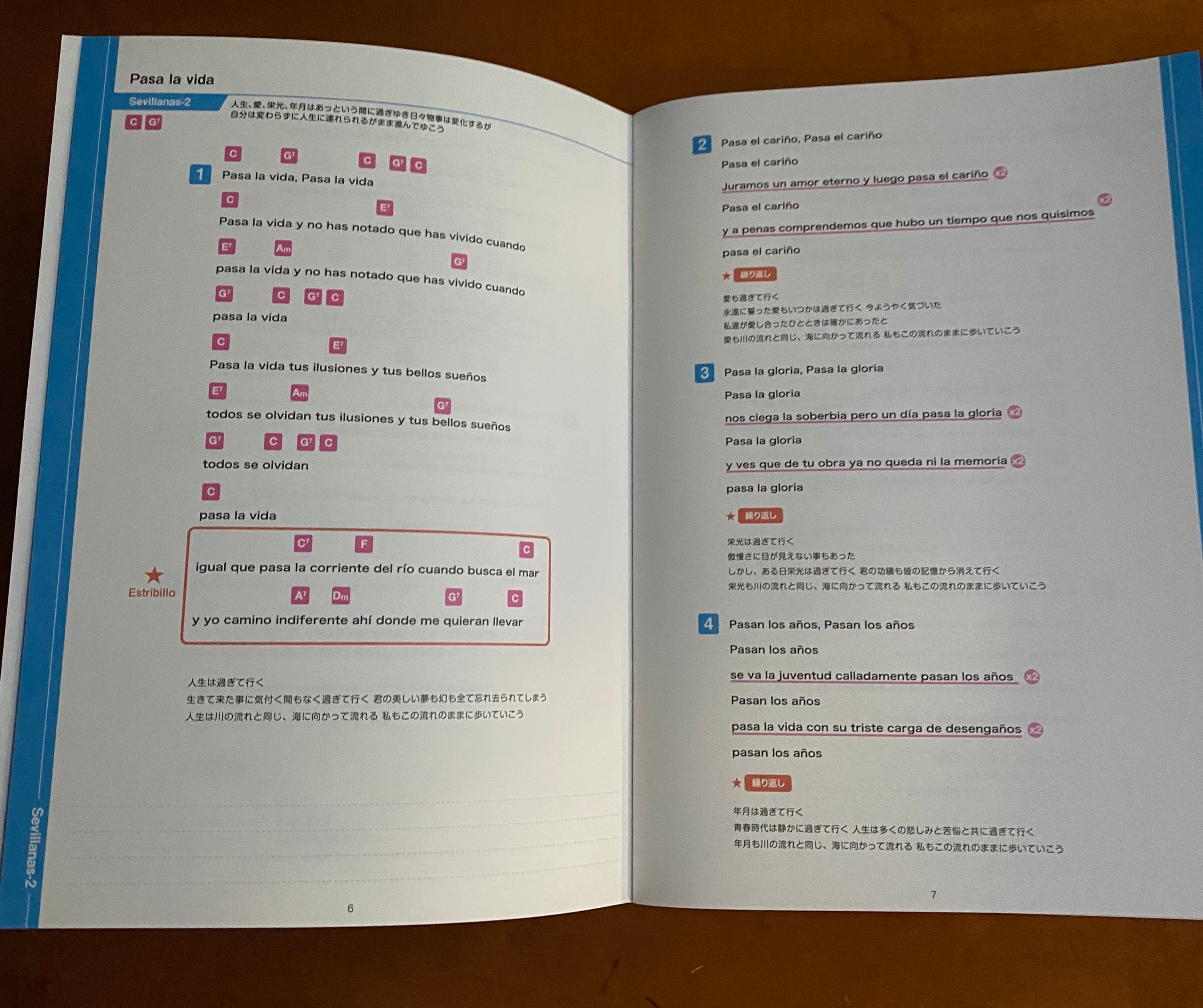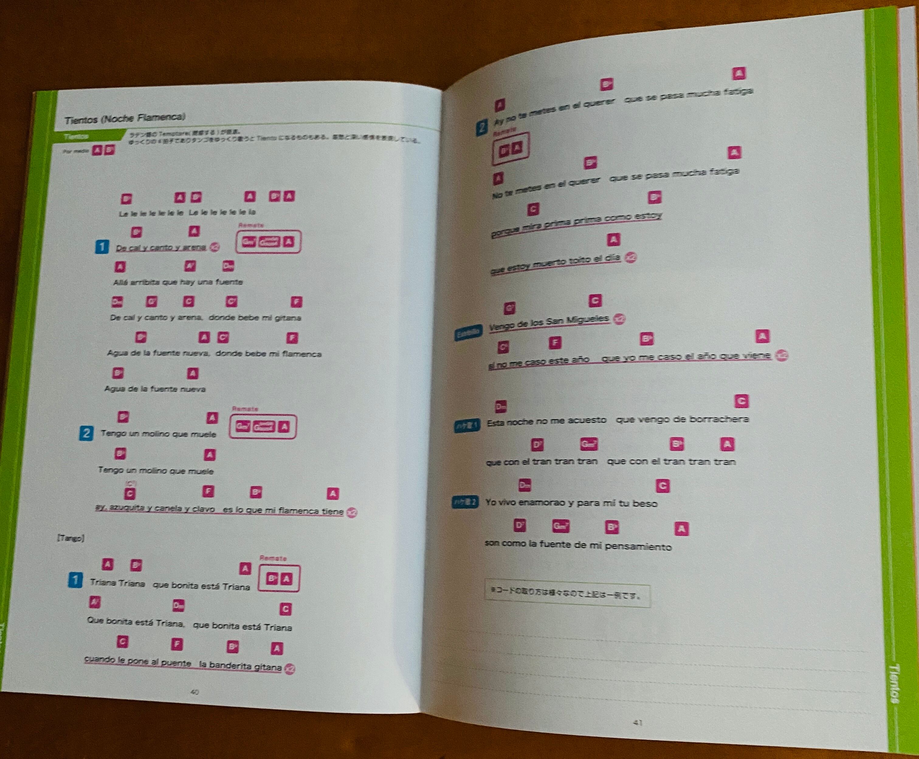 ガイドには、スペイン語のレトラ(歌詞)と共にギターコードも収録。